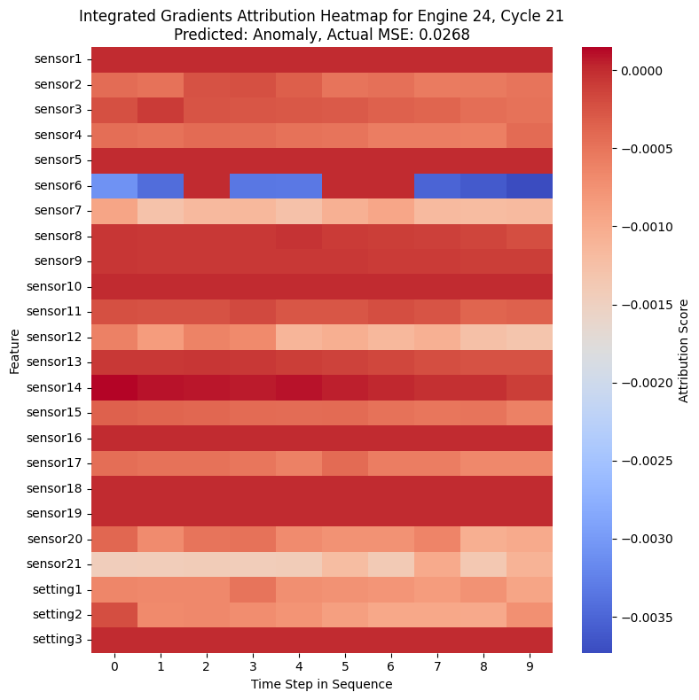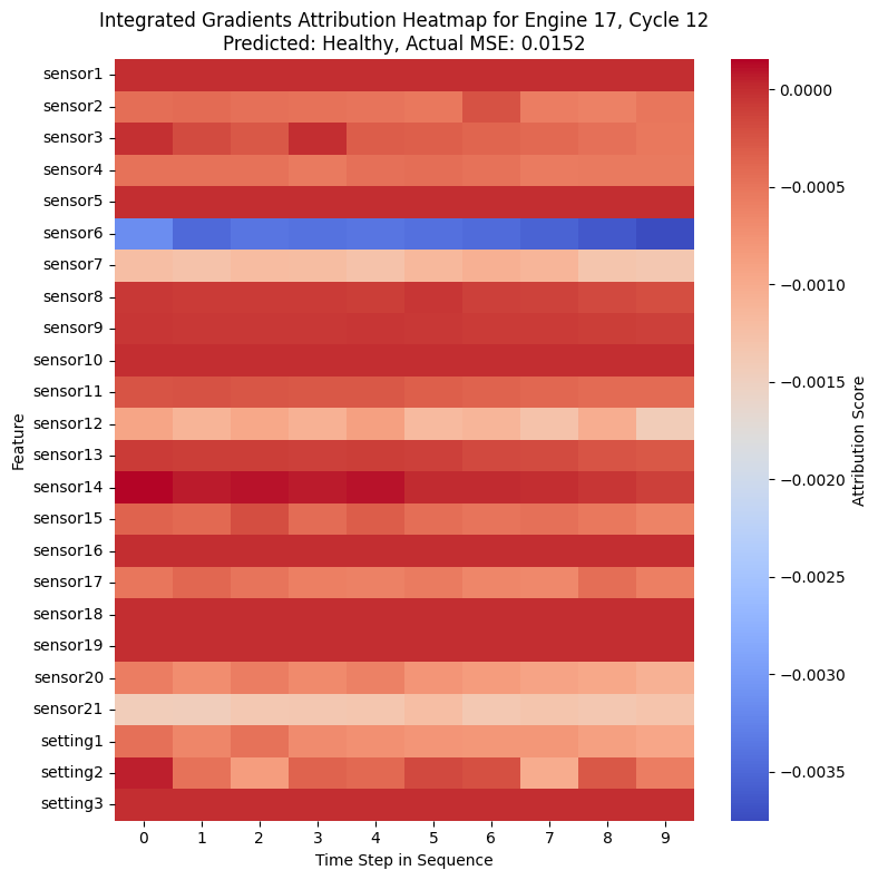 Integrated Gradients aprovecha la información de los gradientes del modelo para medir la contribución de cada característica a la predicción. A diferencia de SHAP y LIME, esta técnica está estrechamente ligada a la arquitectura del modelo, lo que la hace especialmente adecuada para redes neuronales profundas. En modelos LSTM, Integrated Gradients permite analizar cómo la importancia de los sensores evoluciona a lo largo del tiempo, proporcionando una interpretación más alineada con la naturaleza secuencial de los datos.